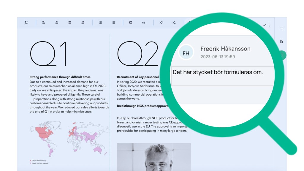 Kommentera, följ upp och se förändringarna ske i realtid. Som ett samarbete ska fungera.